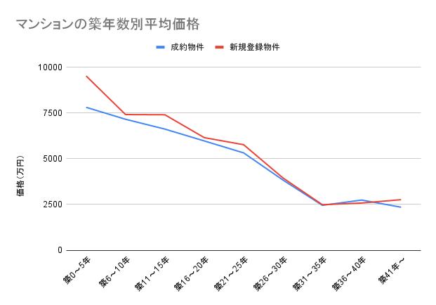築年数別のマンション価格推移