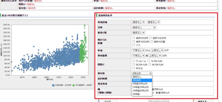 築年数は5年以内が選択でき、新築に近い取引を参照できます。