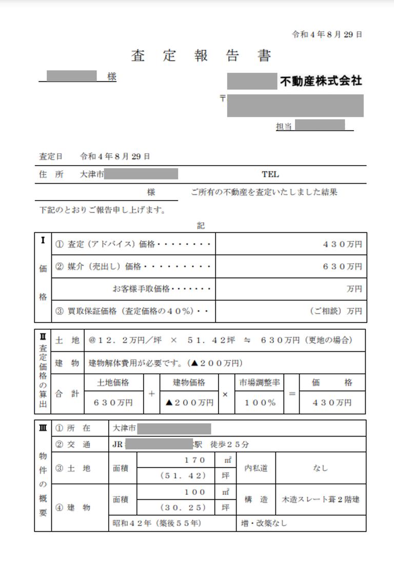 査定を受けた後は、どの会社も自宅に詳しい査定結果を送ってくれて、根拠もはっきり教えてもらえました。結論として、建物自体は価値がつかず、建物は解体する前提で、土地に対して値段がついたようです。
