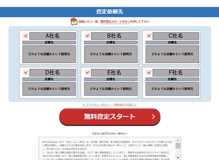 また、ご自身の物件種別を得意としている不動産会社を選ぶこともポイントです。たとえば、土地を査定したいのにマンションに特化しているサイトを利用してしまっては、折角情報を入力したとしても査定を依頼することができません。
