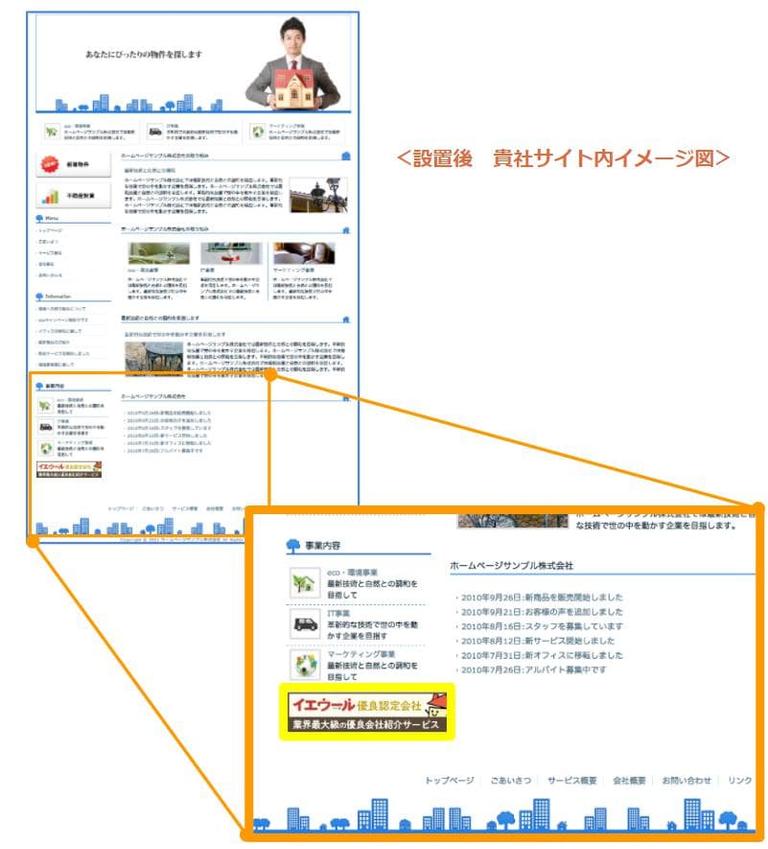 その際に、イエウールのバナーをHPで確認できると安心感があるとのお声を頂戴しており、新規でお使い頂く会社様にはバナーの掲載を頂いております。