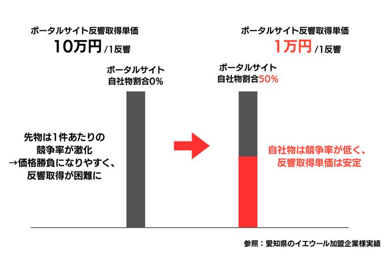こうした状況下で、反響獲得単価を安定させている企業様が注力されているのが「自社物」の獲得です。