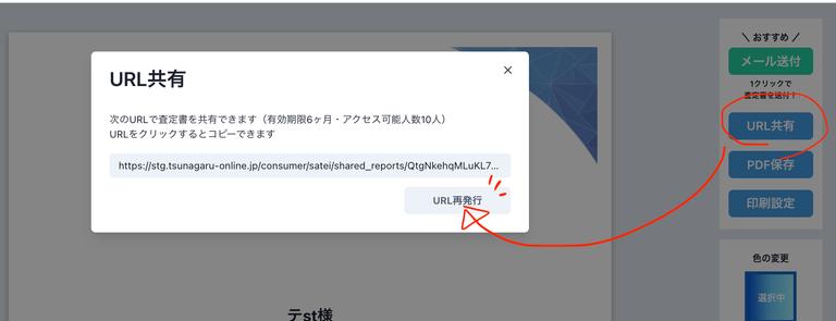 - 査定書プレビュー画面から「URL再発行」を行なってください。