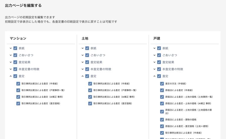 (一括で非表示にしたページは各査定書の印刷設定画面で表示に戻すことができます)