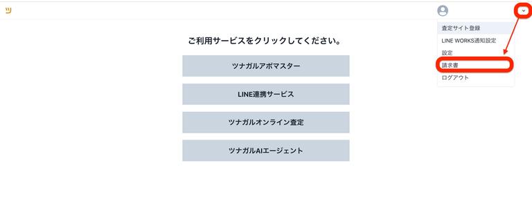 画面からアクセスする場合は画面右上の端にある「 v 」を押して「請求書」を選択してください。